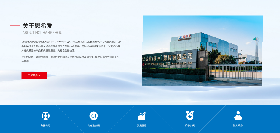 在工廠(chǎng)展示型網(wǎng)站建設領(lǐng)域,派迪科技一直致力于為制造業(yè)與工業(yè)企業(yè)提供更高標準的視覺(jué)呈現與數字化展示方案。本次,我們?yōu)楹贾荻飨?ài)新材料有限公司(NCI Hangzhou)完成了全新官網(wǎng)的設計與開(kāi)發(fā),以“科技感、國際化、模塊清晰”為核心方向,幫助企業(yè)展示其在新材料領(lǐng)域的研發(fā)實(shí)力與生產(chǎn)能力。
