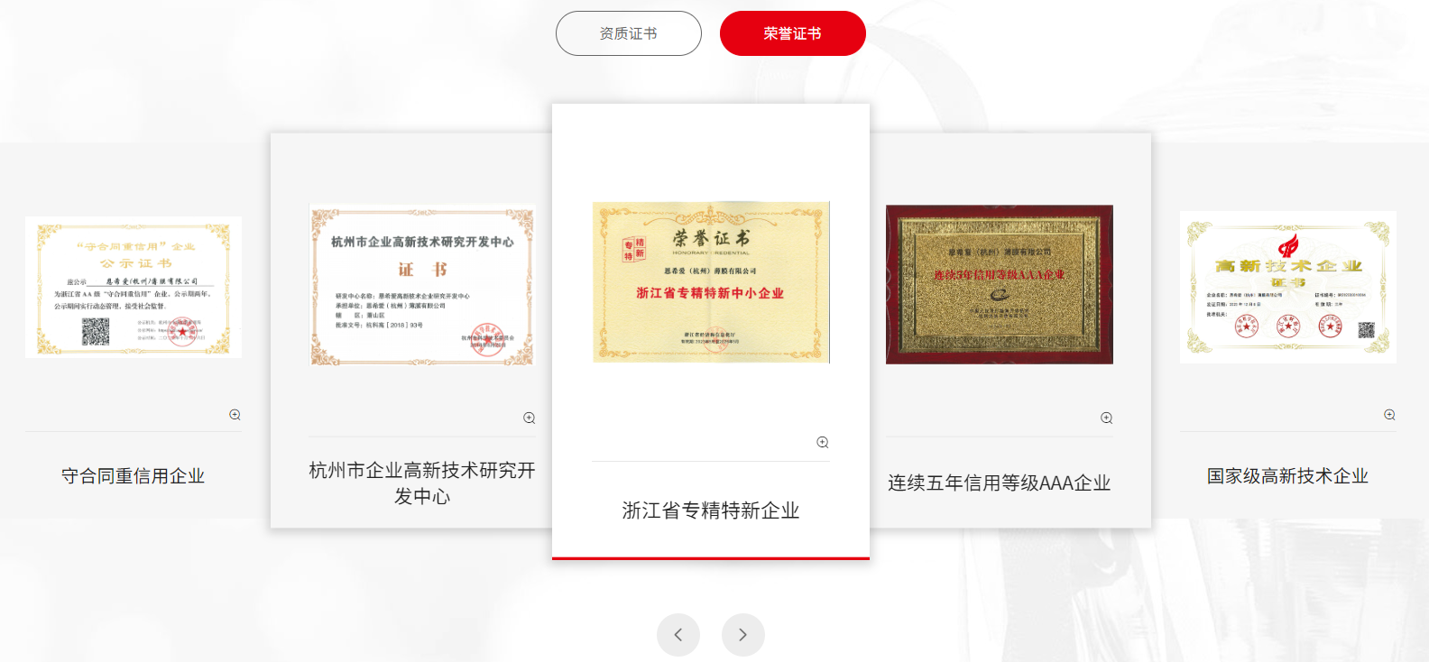 網(wǎng)站設置了專(zhuān)門(mén)的“認證與資質(zhì)”模塊,集中展示企業(yè)獲得的: