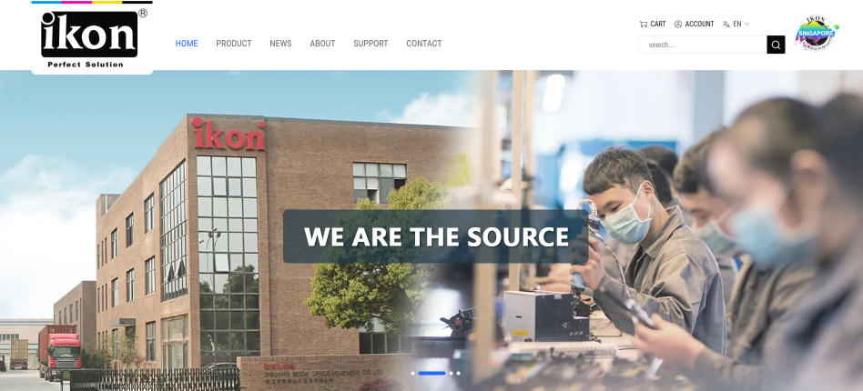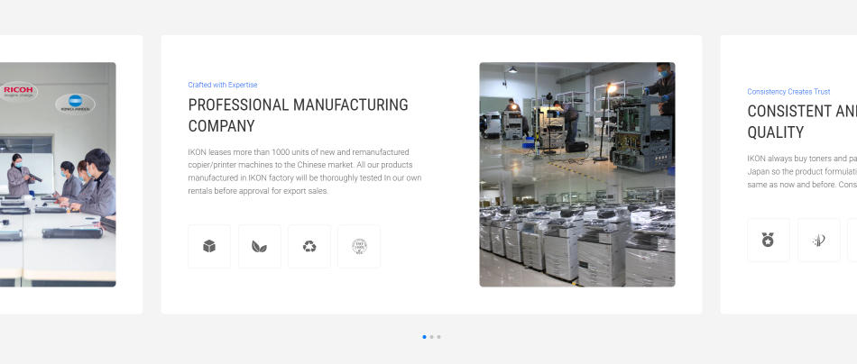 IKON 官網(wǎng)首頁(yè)并未采用常見(jiàn)的抽象視覺(jué)或概念化設計,而是直接使用真實(shí)工廠(chǎng)建筑與生產(chǎn)場(chǎng)景作為核心視覺(jué)元素。