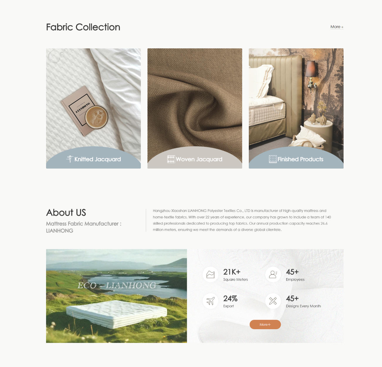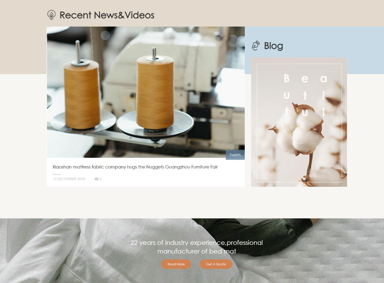 這個(gè)外貿網(wǎng)站,一眼就能看出它是做紡織、家紡、床墊面料的外貿網(wǎng)站,無(wú)論是視覺(jué)氛圍、圖片選擇,還是整體節奏,都圍繞:舒適、質(zhì)感、穩定、專(zhuān)業(yè)制造、來(lái)展開(kāi),這一點(diǎn)對外貿客戶(hù)非常重要,能在第一時(shí)間建立“靠譜制造商”的印象。